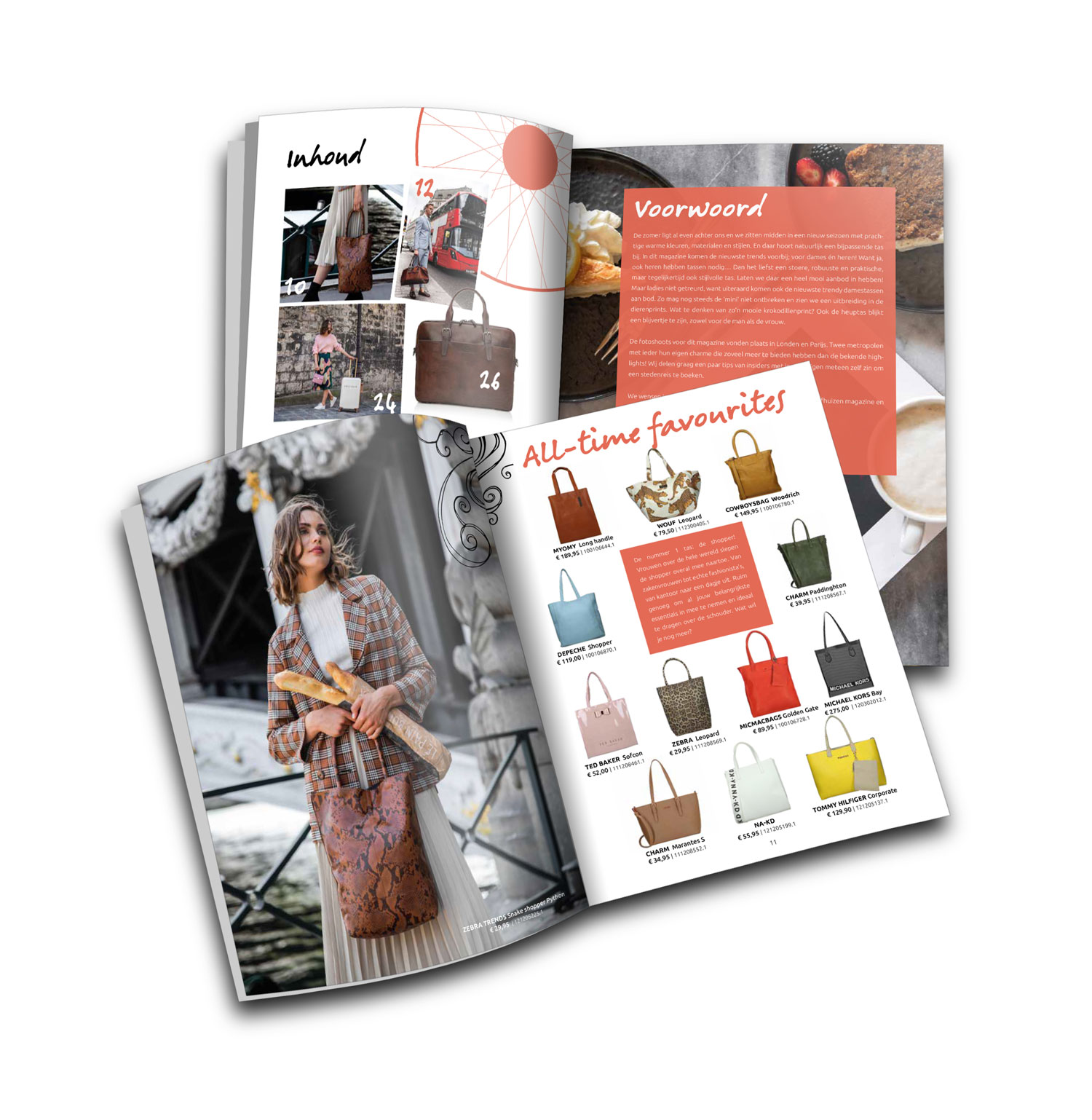 Productmagazine met tassen en koffers