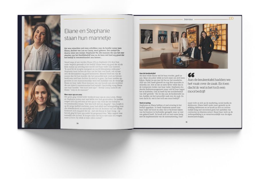 Een genaaid gebonden boek van 100 pagina’s mogelijk gemaakt door de klanten van Loven. Eén van de grootste totaalaanbieders in de truck- en trailermarkt van Limburg en het oostelijke deel van Noord-Brabant.